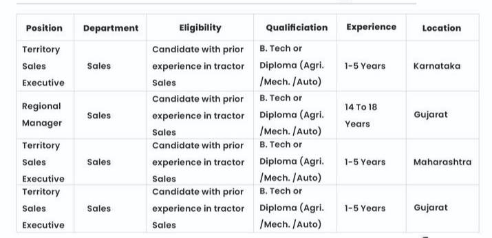 Captain Tractors Recruitment 2025 | Territory Sales Executive, Regional Manager | Diploma / B.Tech | January 2025 |